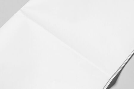Blank newspaper mockup on a grey backgound. Closeup.