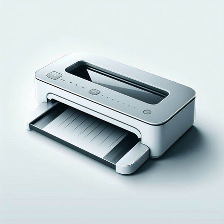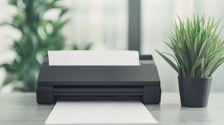 Side view of design printer in office with A paper size engraved on plastic body A4,