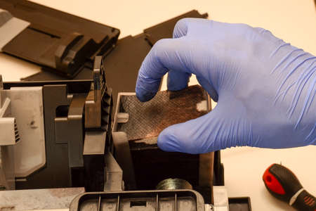 Repair inkjet printers. Workplace engineer changing absorber