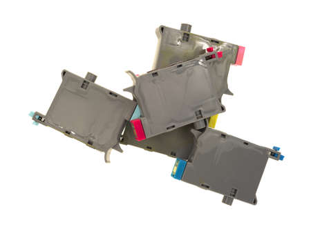 close-up shot of a CMYK ink cartridges for a printer