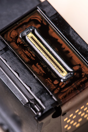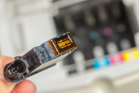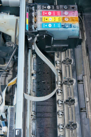 Close up color printer ink jet cartridge of the printer inject
