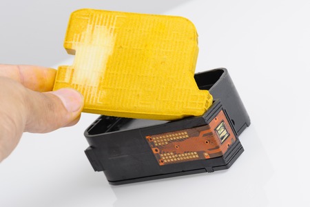 closeup yellow spong inside the ink cartridge