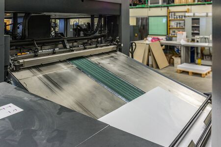 Working place with professional machines for large format cutting and printing waiting for personnel