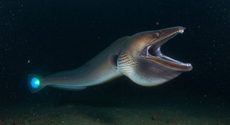 A closeup shot of an eel swimming in a coral reef