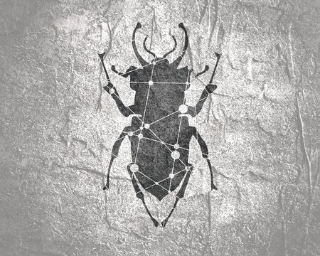 Illustration of abstract bug. Beetle isolated icon. Connected lines with dots texture