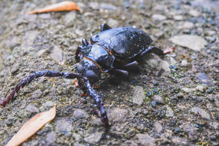 Insects, beetles, Giant rhinoceros beetle Male and female (Chalcosoma Caucasus) Tropical wildlife of Thailand.