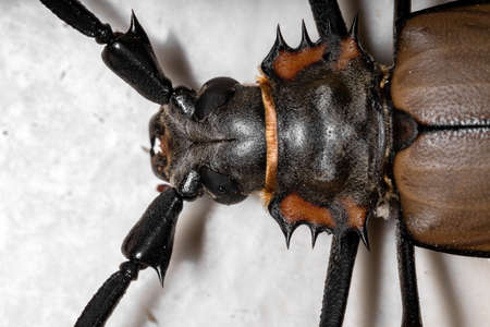 Adult Giant Imperious Sawyer of the species Enoplocerus armillatus with selective focus