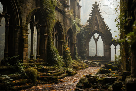 Ominous Abandoned gothic castle church. Ruin scary. Generate Ai