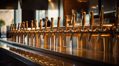 Luxurious Brewery. Glistening Gold Beer Tap Handles