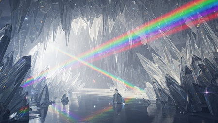 Discover the enchanting beauty of vibrant crystals illuminated by a rainbow, creating a mesmerizing display of colors and light. Perfect for artistic themes.
