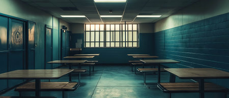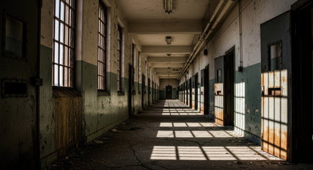the empty corridor of a prison, no prisoners or guards