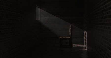 3d llustration empty, cell lonely sad light window