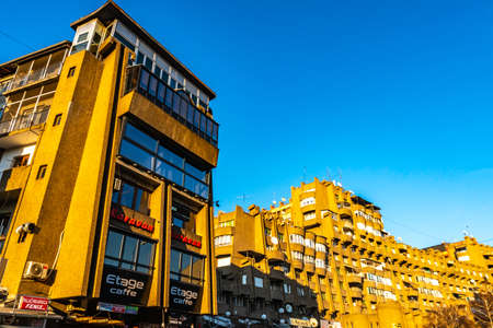 Apartment buildings in the city of Belgrade, Serbia, on a sunny autumn day