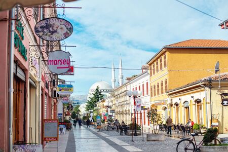 Shkoder, Albania - June 1, 2018: Downtown of Shkoder, a city in north of Albania.