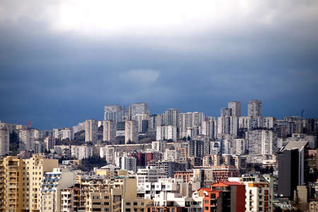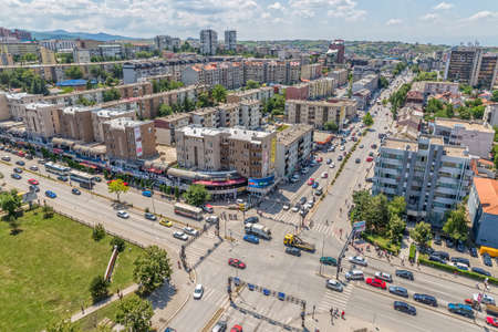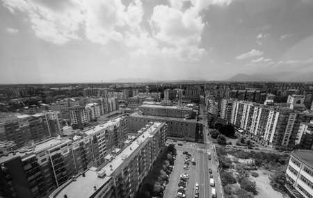 PRISTINA, KOSOVO - JULY 01, 2015: Aerial view of the big residential buildings in the new part of capital city.