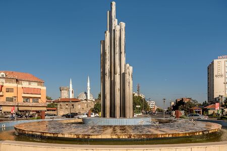 Shkoder, Albania- August 10, 2019: Democracy square in Shkoder, Albania
