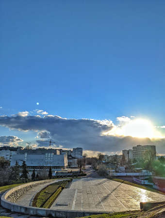 Nis, Serbia - September 07, 2021 Skyline of the city of Nis at sunset with a view of the buildings on an autumn day