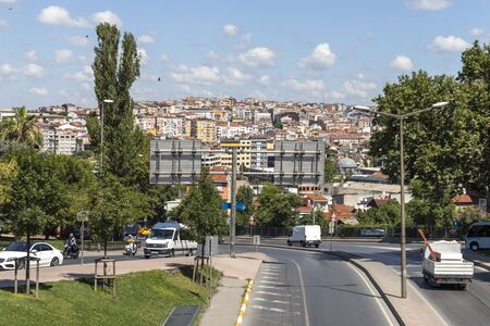 ISTANBUL, TURKEY - JULY 27, 2019: Typical street and building in Karakoy district in city of Istanbul, Turkey