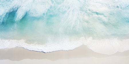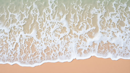 Serene ocean waves crashing on realistic sandy beach background for summer design