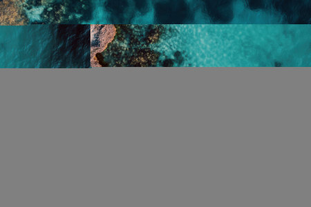 a rocky shore with vibrant algae covering the rocks, captured in stunning 8k resolution. this aerial view showcases the beauty of nature, with a japanese-inspired imagery and minimalist photography style. the australian landscape provides a breathtaking backdrop for the intricate underwater worlds hidden beneath the surface. this stock photo is available under a creative commons attribution license. ai generated
