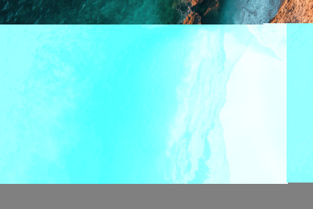Panoramic aerial view of beautiful turquoise ocean wave on sandy beach