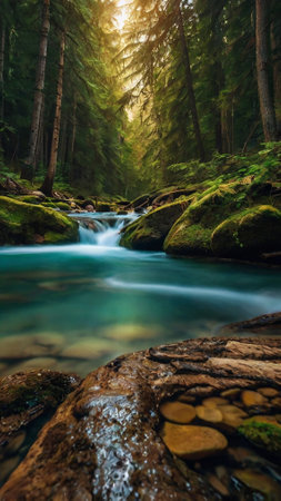 Immerse yourself in the ethereal beauty of an Ancient Redwood Forest, where time stands still amidst the towering giants. The age-old forest whispers tales of centuries past, a wonder and tranquility.