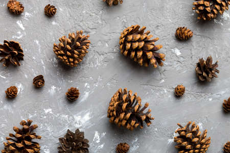 Pine cones pattern background. flat lay, top view