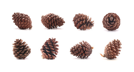 Composition of brown pine cone isolated on white background