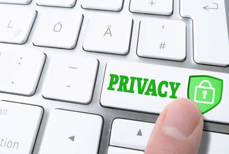 close-up of finger pressing key labeled PRIVACY on computer keyboard
