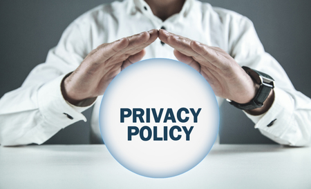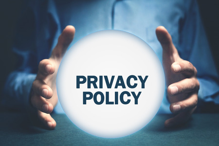Man protect Privacy Policy word with white round.