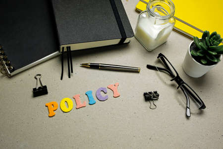 policy word made with felt letters on cardboard background