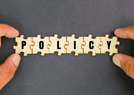 wooden puzzle with the word policy. basic concepts or organizational policies