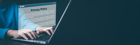 Privacy Policy Service and Document Terms Concept, Business people using laptop with Privacy Policy Service Document technology, Privacy,login performance identification, password and privacy.