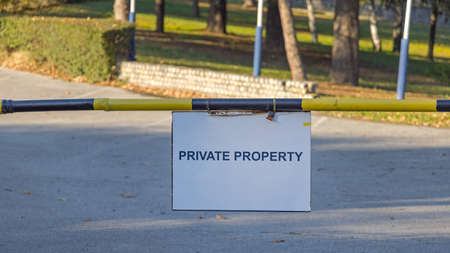 Private no access sign at rural country estate entrance