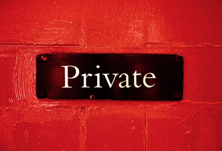 Red and white sign saying PRIVATE hanging on a metal chain link fence
