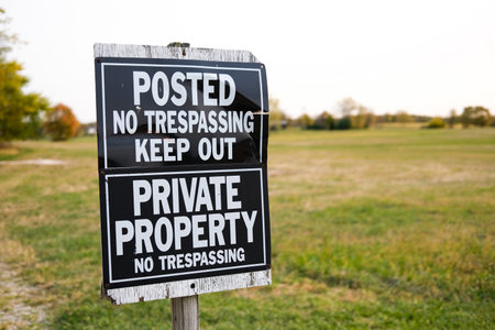 No Trespassing and Private Property Sign Posted near a Country Field