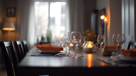 Festive dinner setting with candles and decorations for a special occasion at home