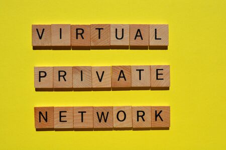 Concept word PRIVATE on wooden cubes on yellow background. Business concept.