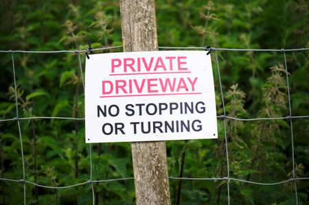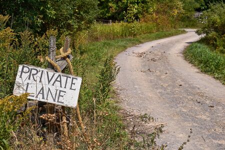 Private sign painted on a wooden board