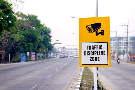 traffic discipline zone sign with soft-focus and over light in the background