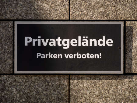 wooden sign private on the stone wall, close up