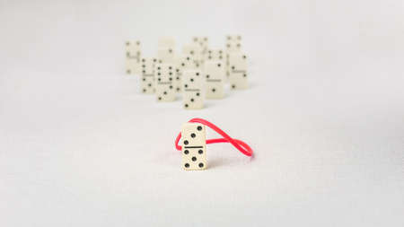 Leadership concept. Main domino figure with red ribbon represent major person lead further items to success