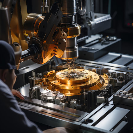 Advanced machinery functions in a modern manufacturing setting, showcasing a skilled operator focusing on quality control and attention to detail.