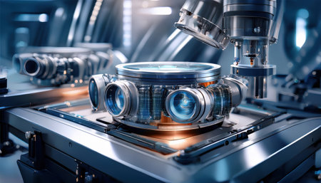 high-tech machinery for lens assembly, created with generative ai