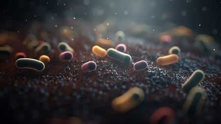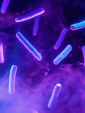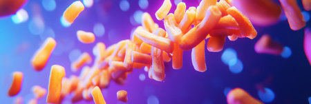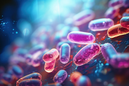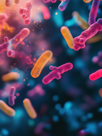 Colorful microscopic view of bacteria under a microscope, scientific research concept