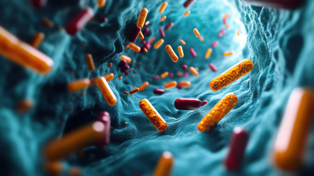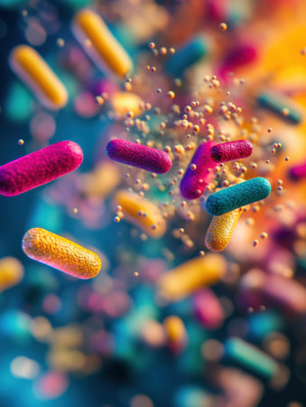 Colorful intestinal bacteria close-up