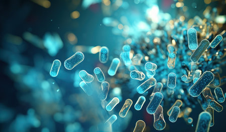 Microscopic View of Diverse Bacteria and Viruses in Dynamic Array with Blurred Background