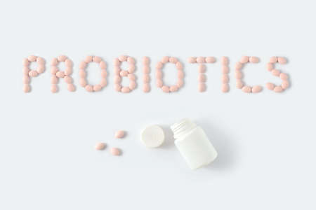 Probiotics inscription text words phrase on the background of packaging with pills