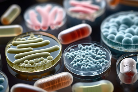 An Exploring the microbiome for pharmaceuticals, detailed lab research on bacteria and drugs, copy space