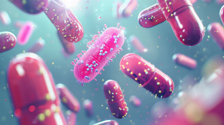 Bacteria are being encircled and attacked by pills, representing breakthroughs in medicine and the fight against infections effectively.